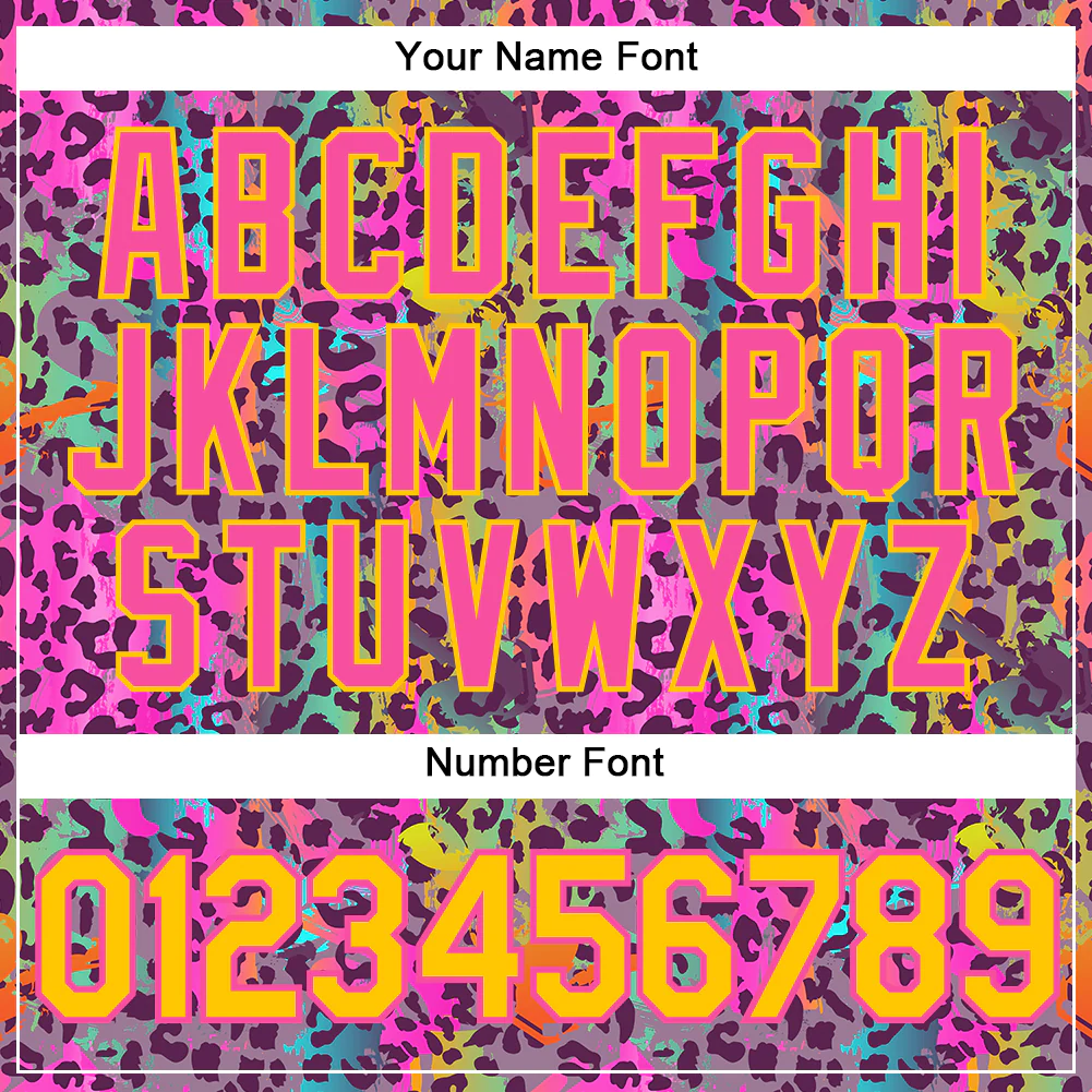 • Custom Graffiti Pattern Gold-Pink 3D Colorful Leopard Authentic Baseball Jersey