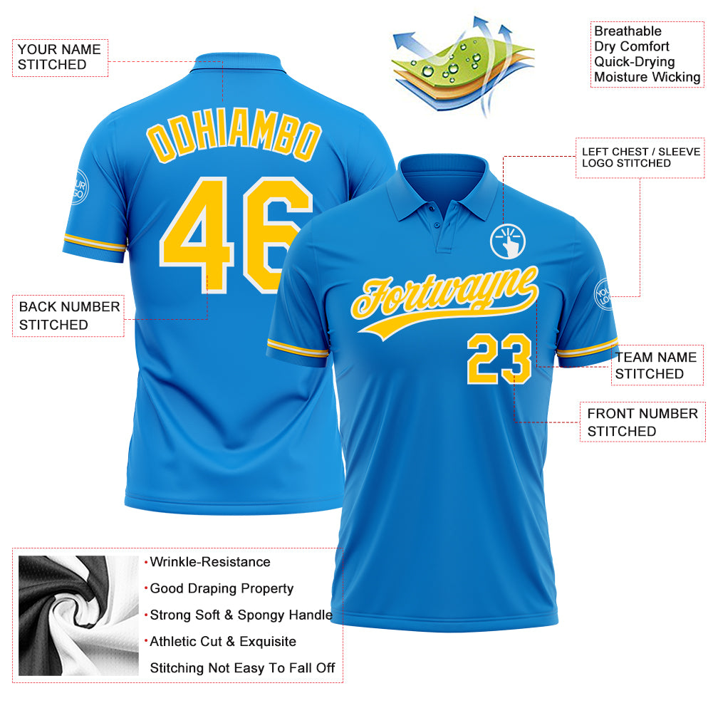 • Custom Blue Yellow-White Performance Vapor Golf Polo Shirt