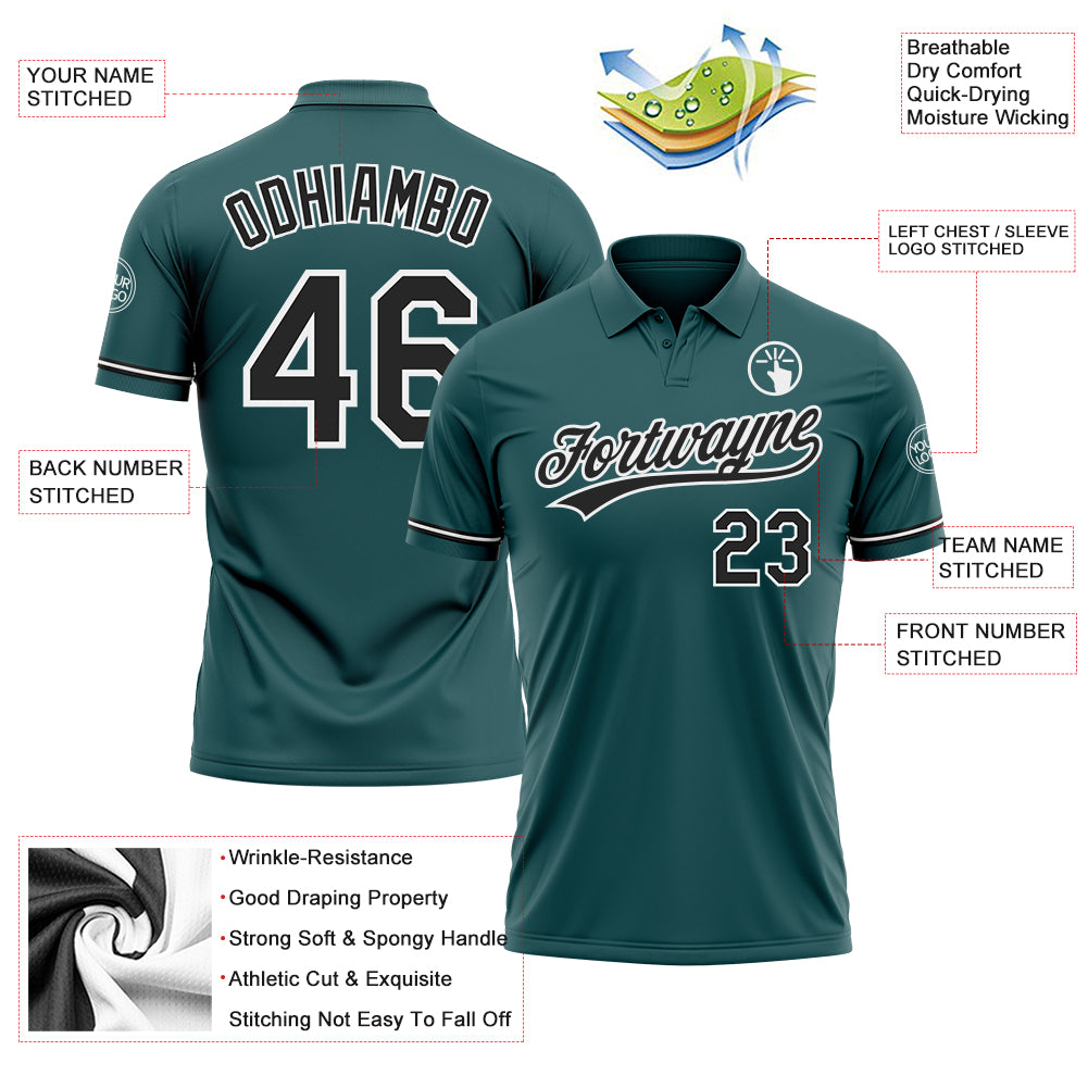 • Custom Midnight Green Black-White Performance Vapor Golf Polo Shirt