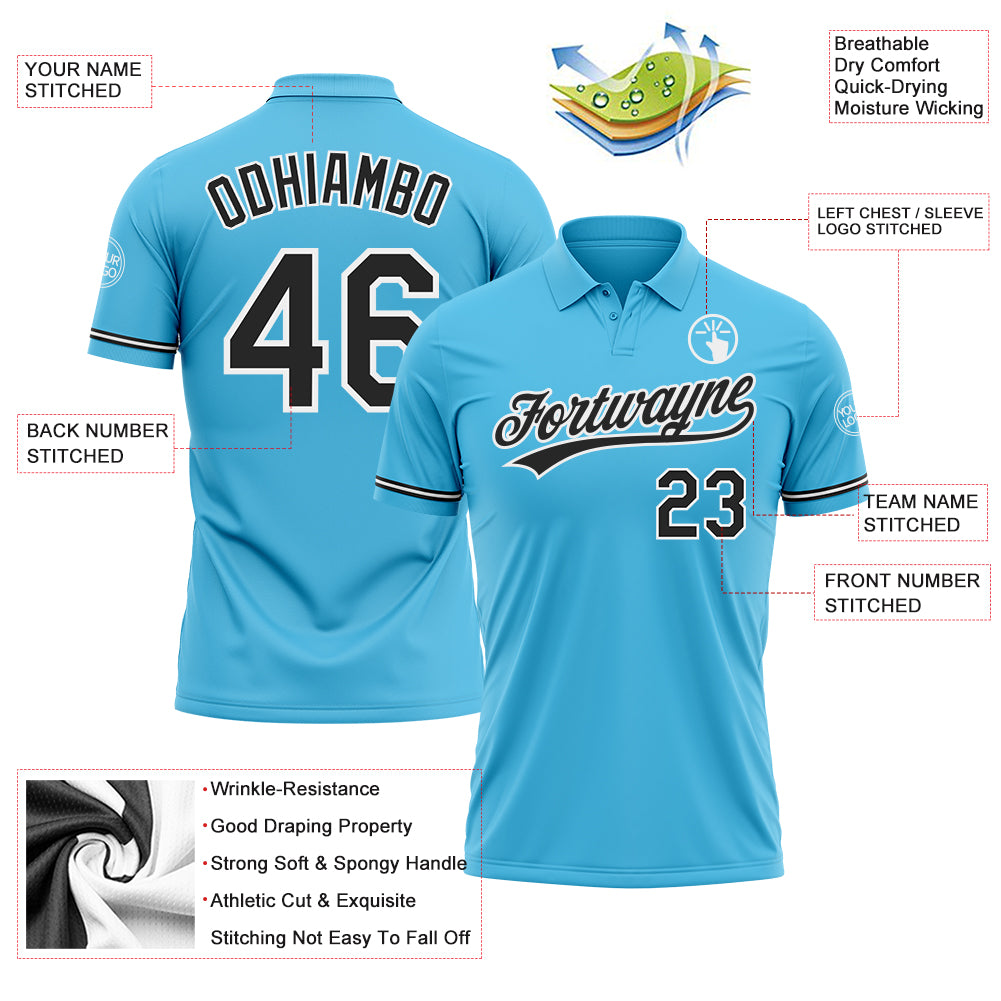 • Custom Sky Blue Black-White Performance Vapor Golf Polo Shirt