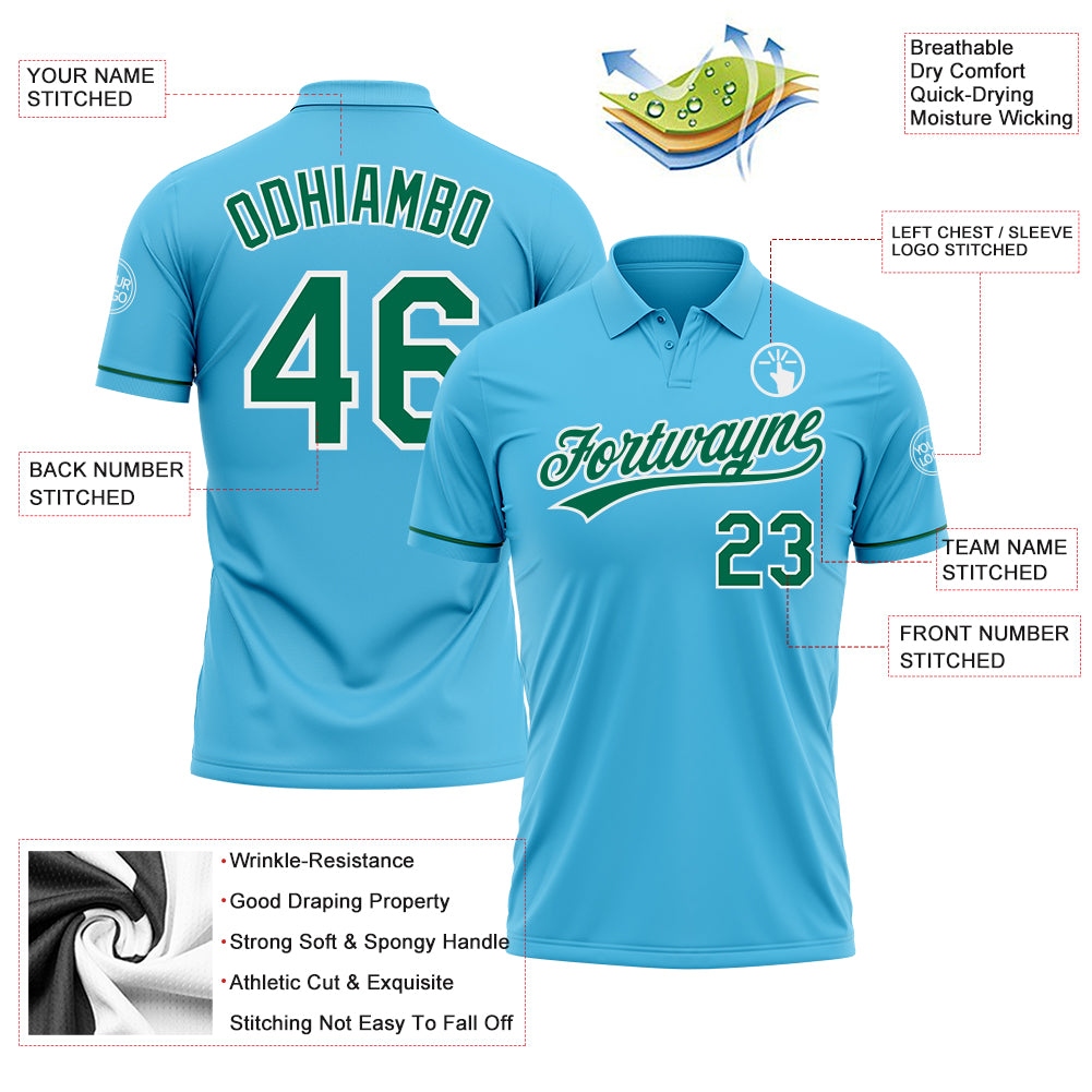 Custom Sky Blue Kelly Green-White Performance Vapor Golf Polo Shirt
