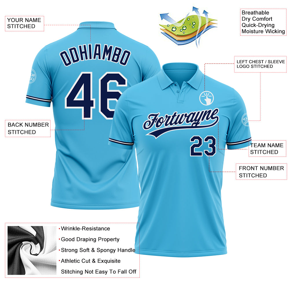 • Custom Sky Blue Navy-White Performance Vapor Golf Polo Shirt